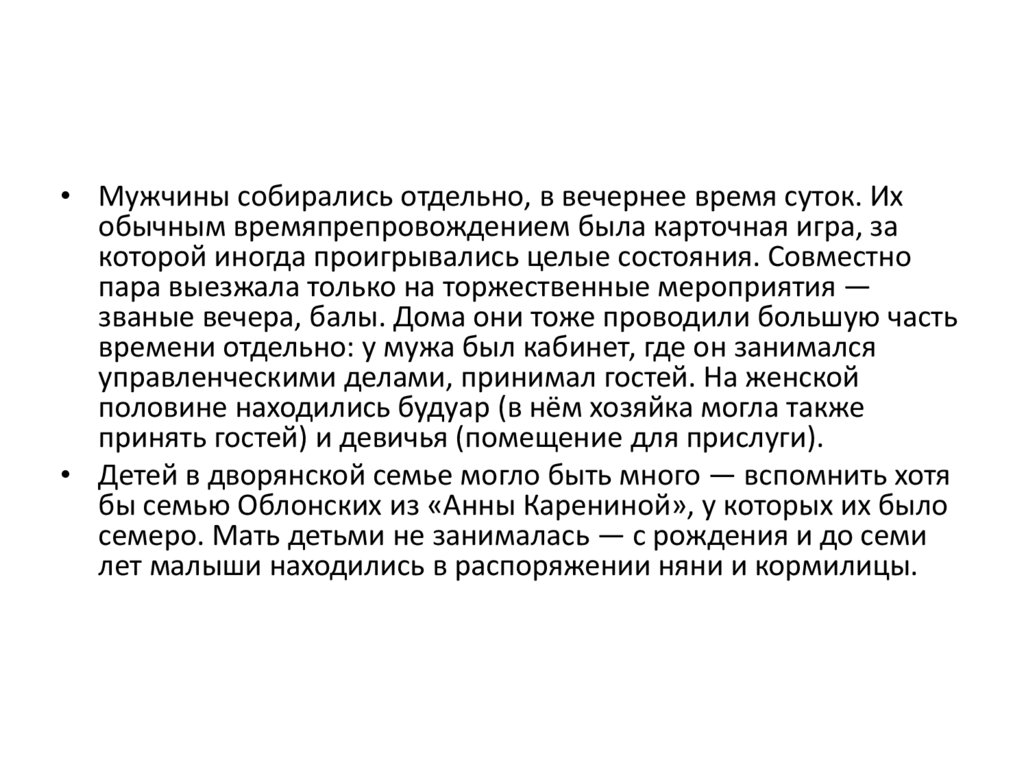 • В дворянских семьях, как и везде в России,царил патриархат. Все важные решения