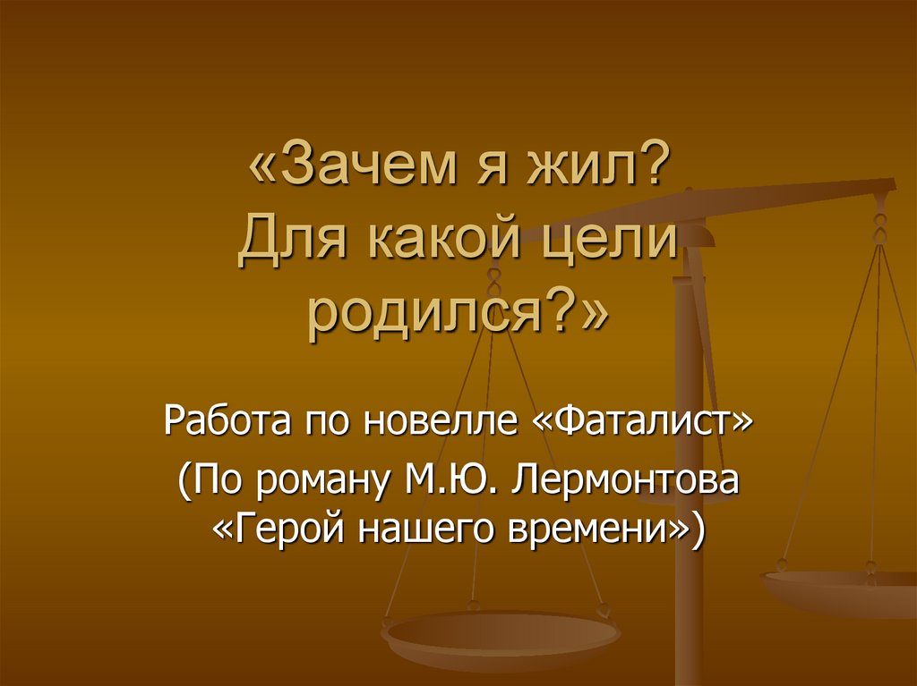 1. «Зачем я жил? Для какой цели родился?»