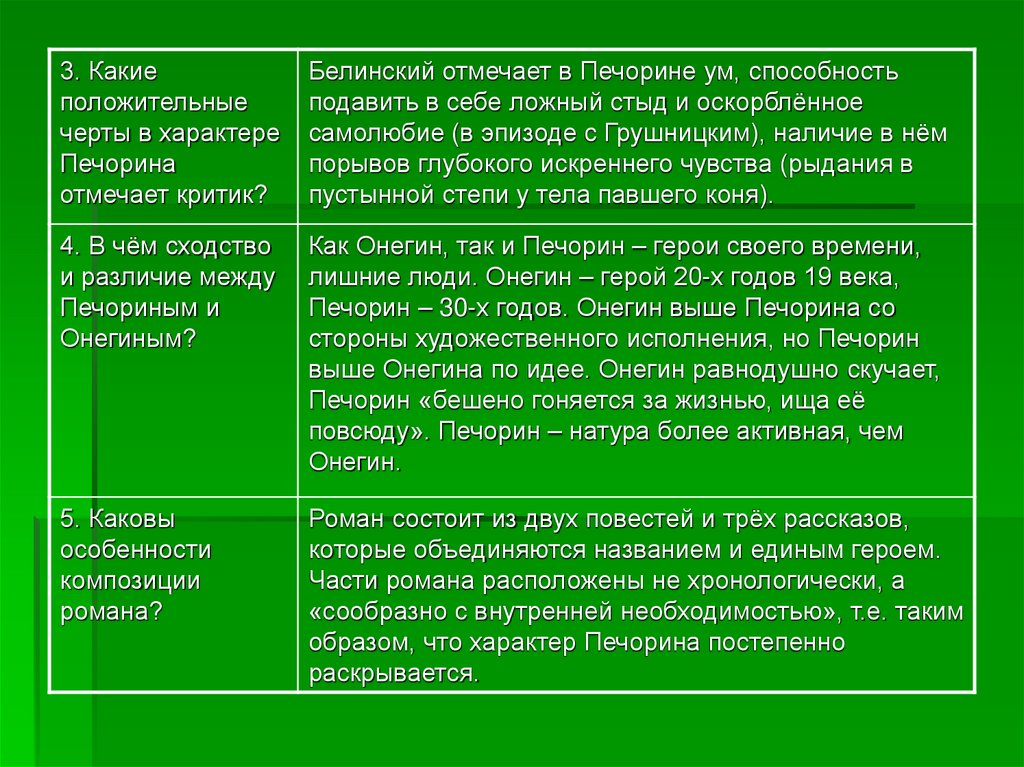 Печорина. Эти черты Белинский не