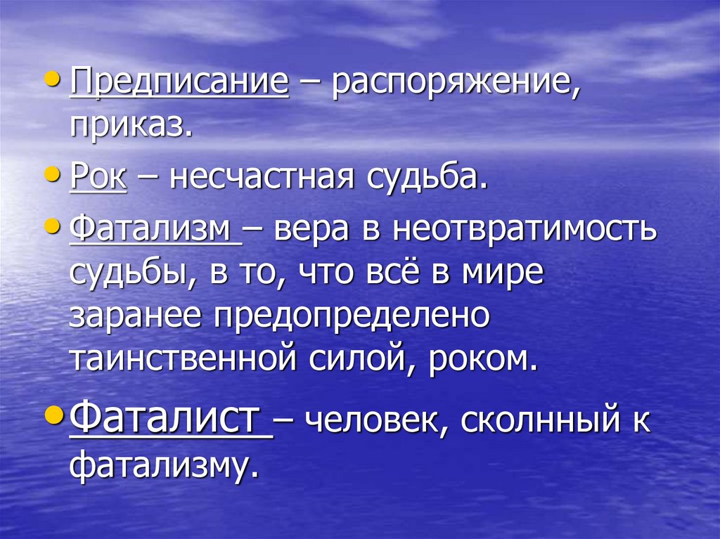 • Фатализм – вера в неотвратимость