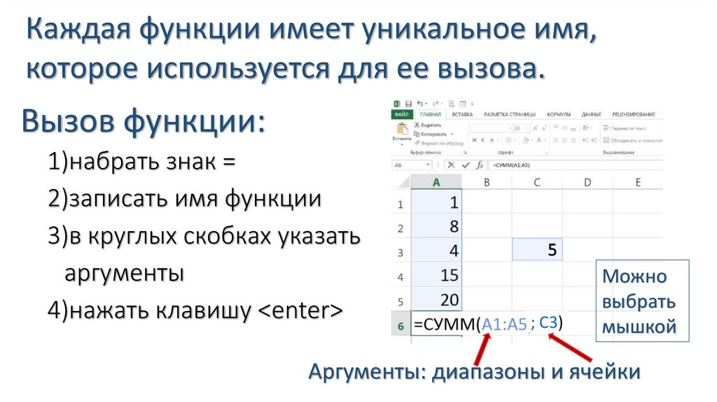 Каждая функции имеет уникальное имя,которое используется для ее вызова.