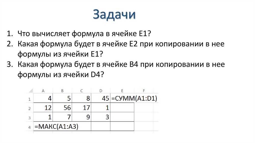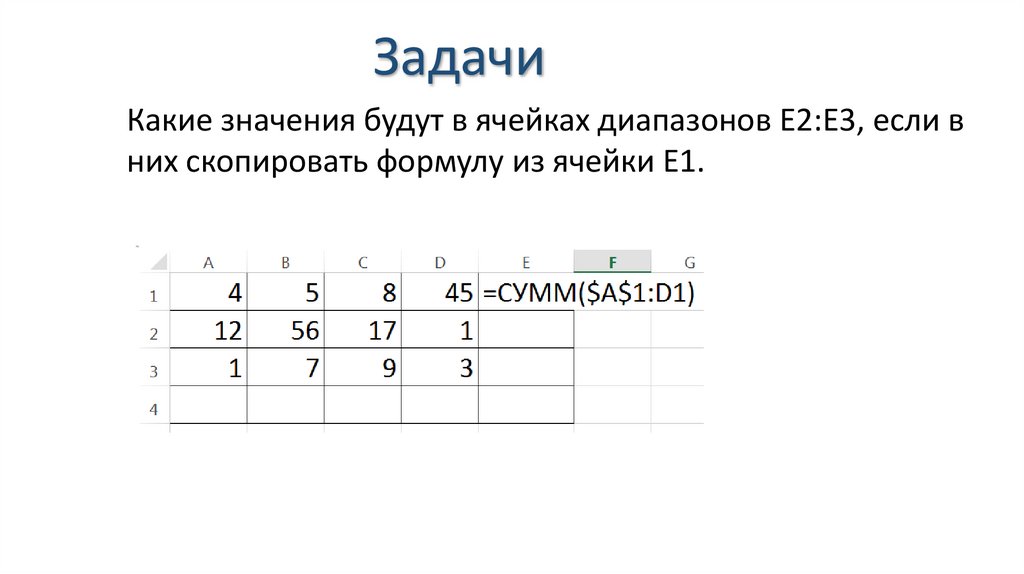 ЗадачиКакие значения будут в ячейках диапазонов E2:E3, если в