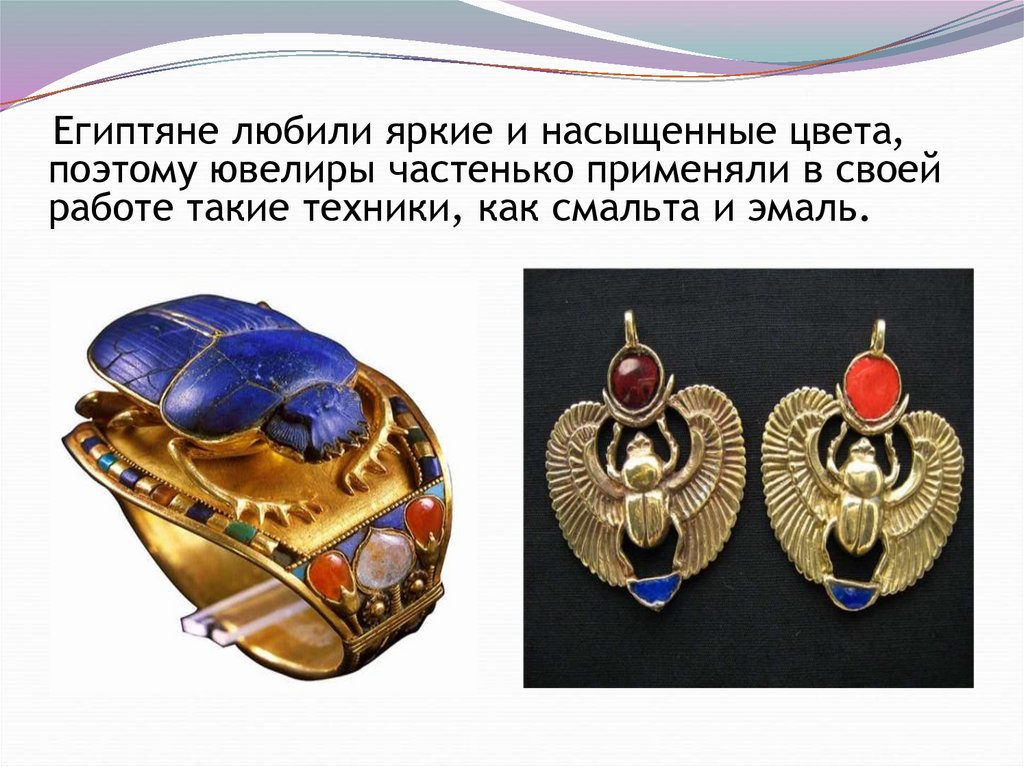 Египтянам были известны практически все видыукрашений, которые используются и сейчас. Самым