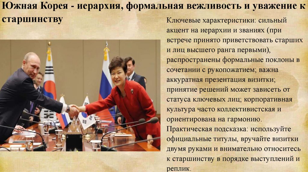 Ключевые характеристики: приветствие важнейшая часть встречи; рукопожатание