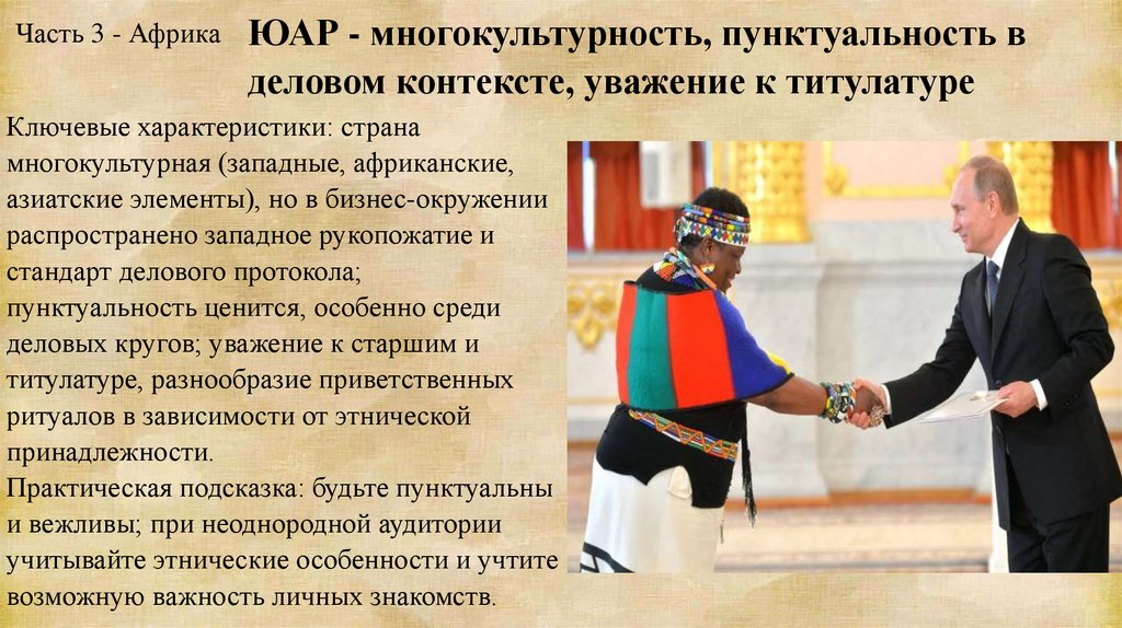 Часть 3 - АфрикаЮАР - многокультурность, пунктуальность в