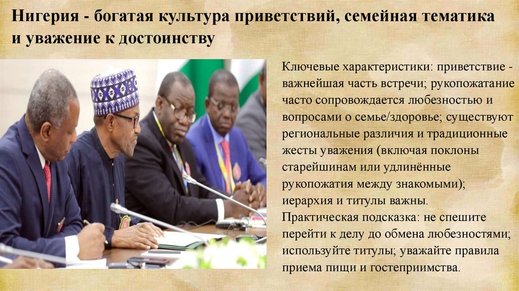 Нигерия - богатая культура приветствий, семейная тематикаи уважение к достоинству
