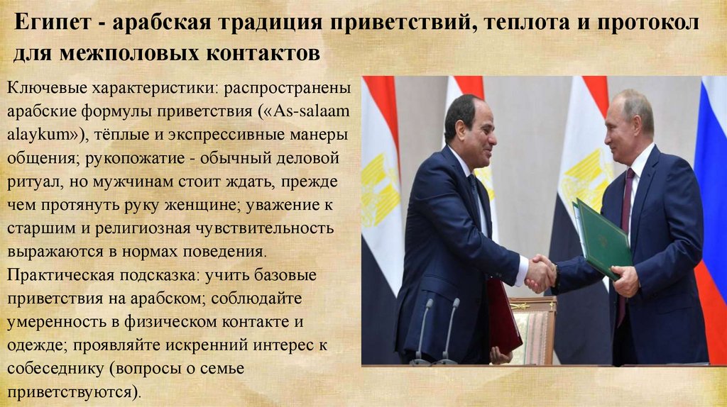 Египет - арабская традиция приветствий, теплота и протоколдля межполовых контактов