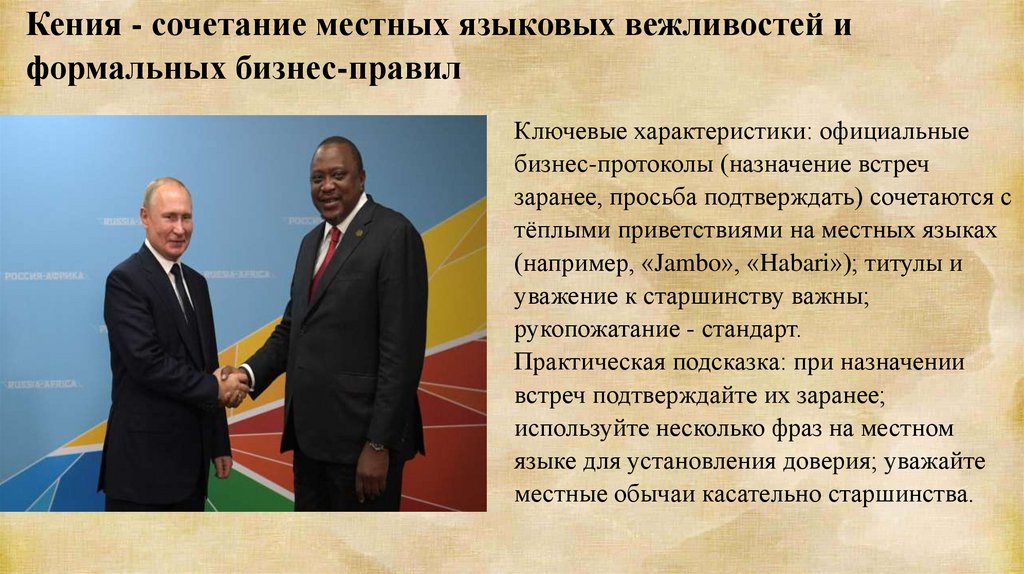 Кения - сочетание местных языковых вежливостей иформальных бизнес-правил