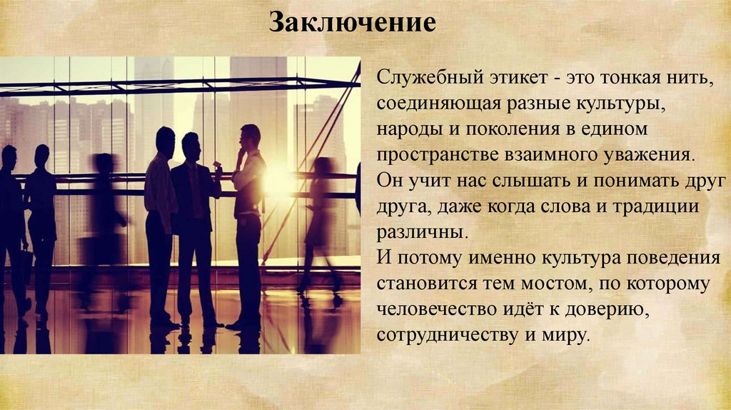 ЗаключениеСлужебный этикет - это тонкая нить,