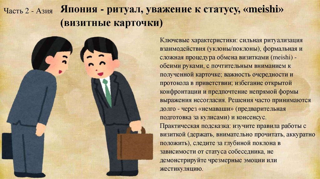 Часть 2 - АзияЯпония - ритуал, уважение к статусу, «meishi»