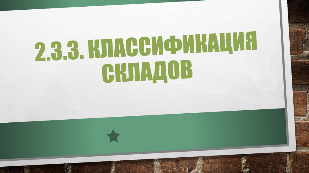 ПРИЗНАКИКЛАССИФИКАЦИИ СКЛАДОВ