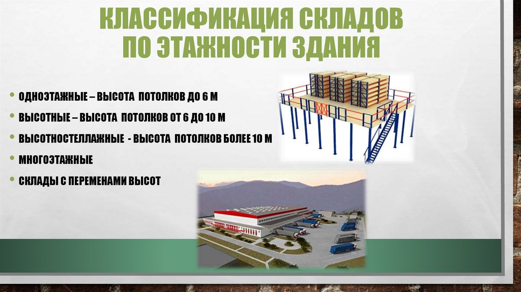 КЛАССИФИКАЦИЯ СКЛАДОВПО ЭТАЖНОСТИ ЗДАНИЯ