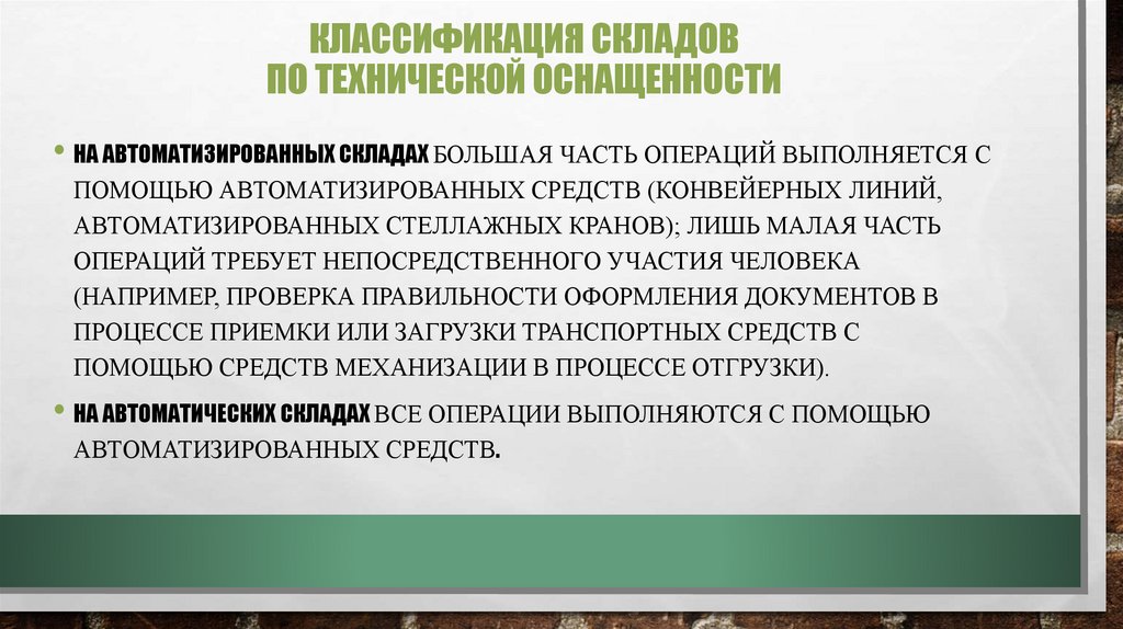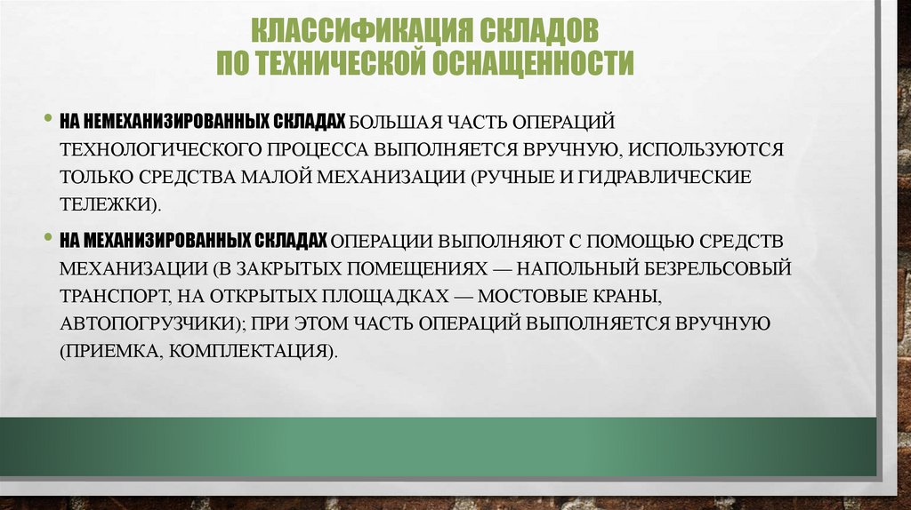 • НА МЕХАНИЗИРОВАННЫХ СКЛАДАХ ОПЕРАЦИИ ВЫПОЛНЯЮТ С ПОМОЩЬЮ СРЕДСТВ