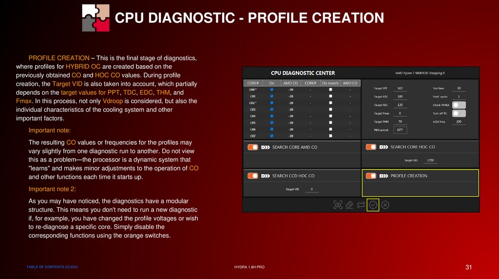 CPU DIAGNOSTIC - PROFILE CREATION
