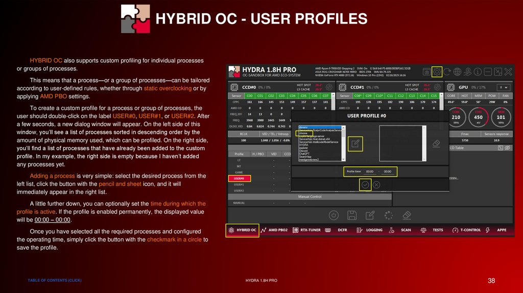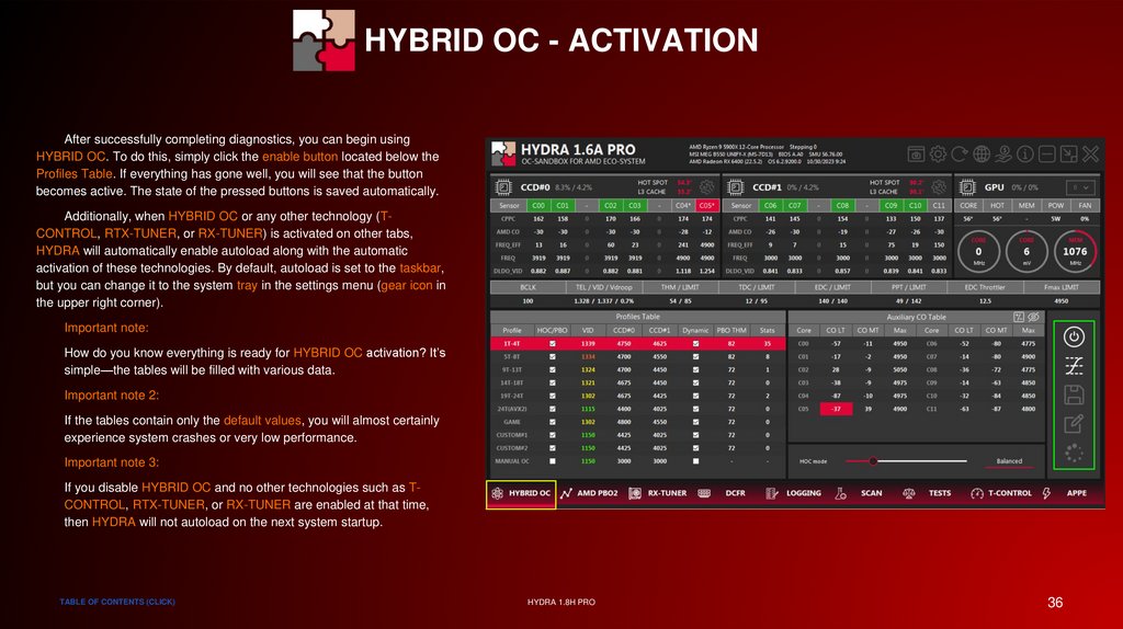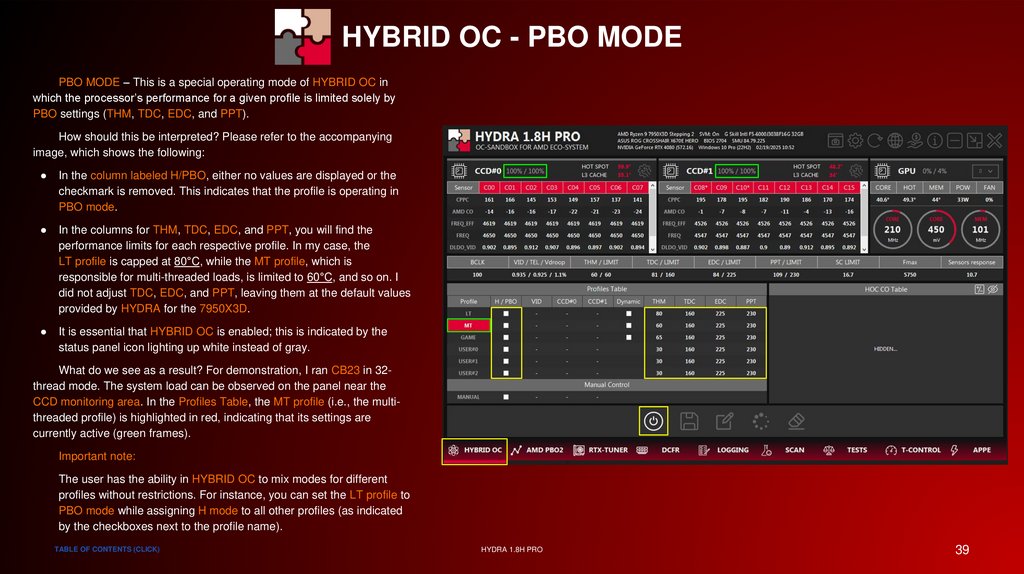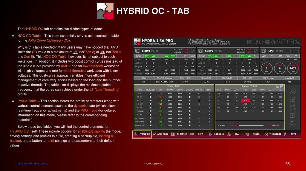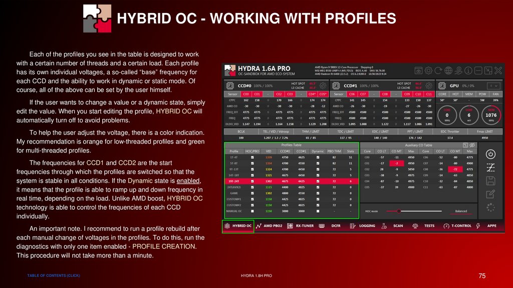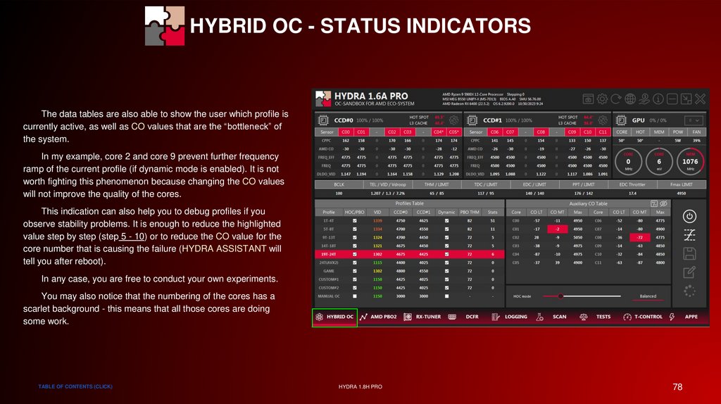 HYBRID OC - STATUS INDICATORSThe data tables are also able to show the user which profile is