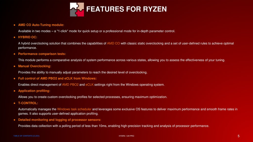 FEATURES FOR RYZEN