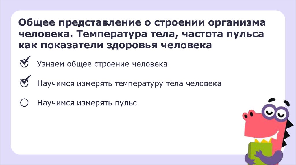 Общее представление о строении организмачеловека. Температура тела, частота пульса