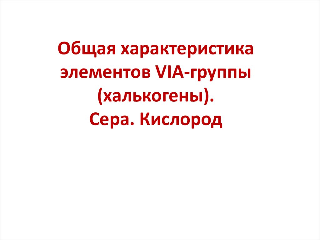 1. Общая характеристика элементов VIA-группы (халькогены). Сера. Кислород