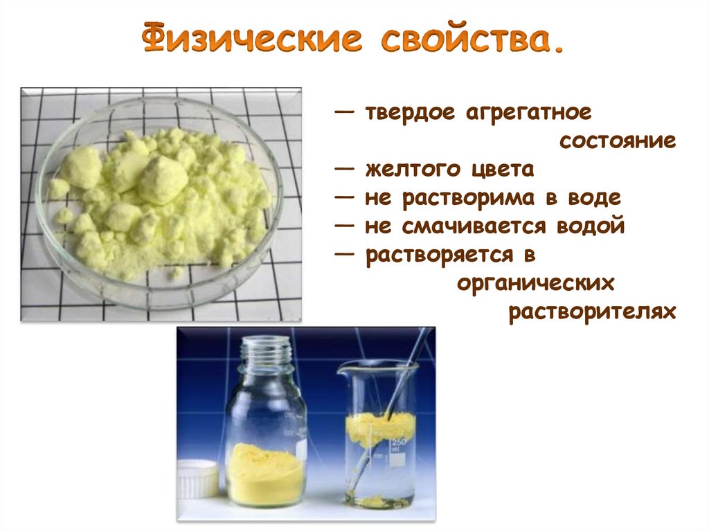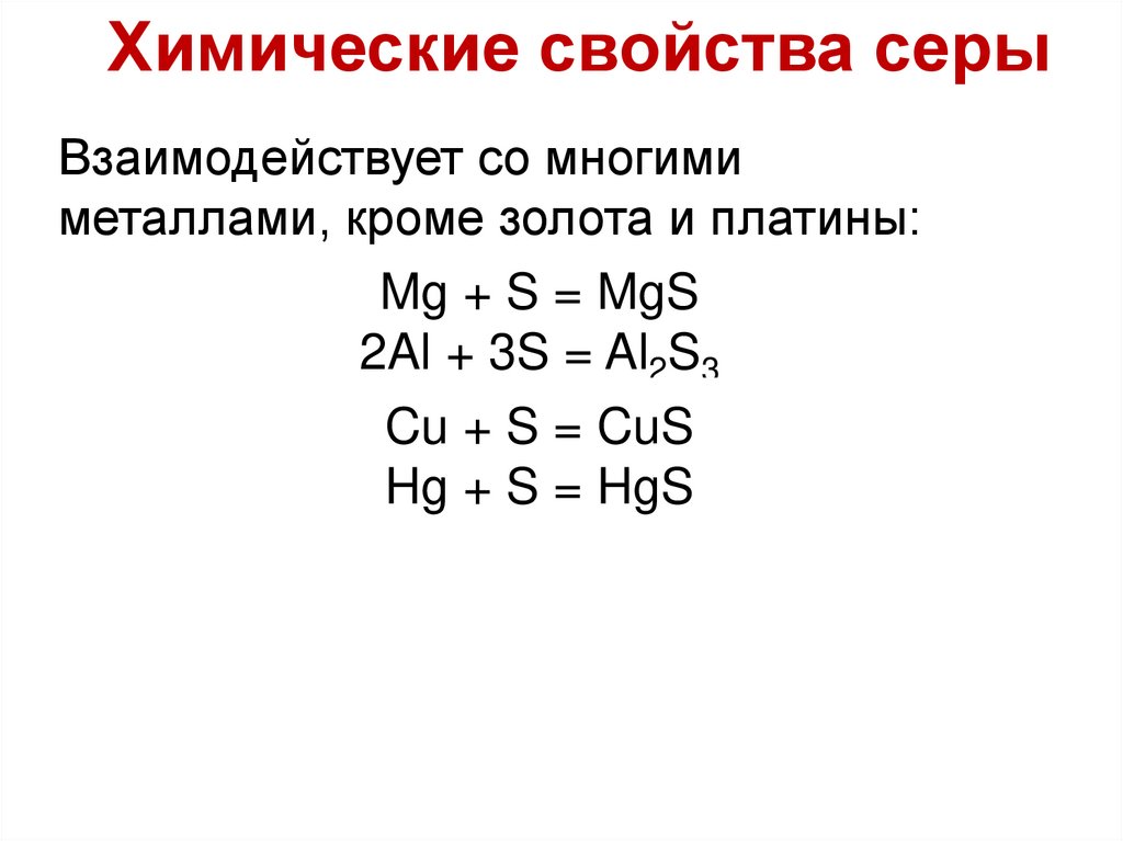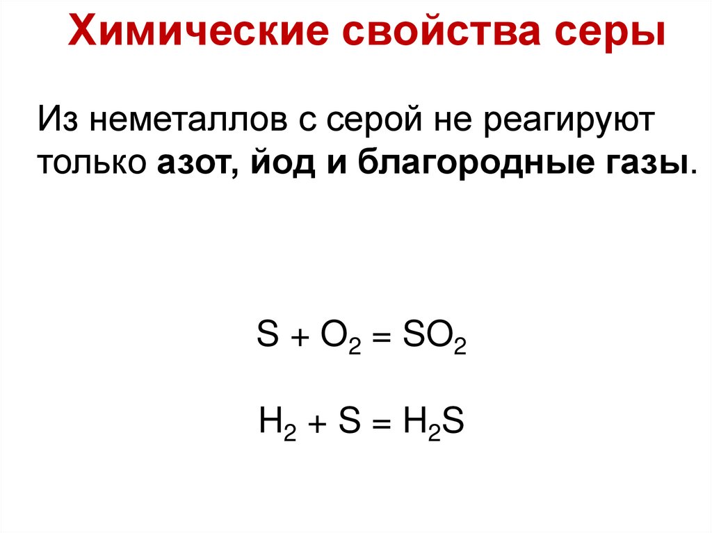 Химические свойства серыИз неметаллов с серой не реагируют