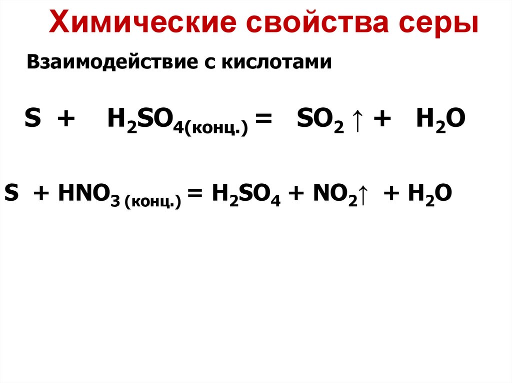 Химические свойства серыВзаимодействие с кислотами