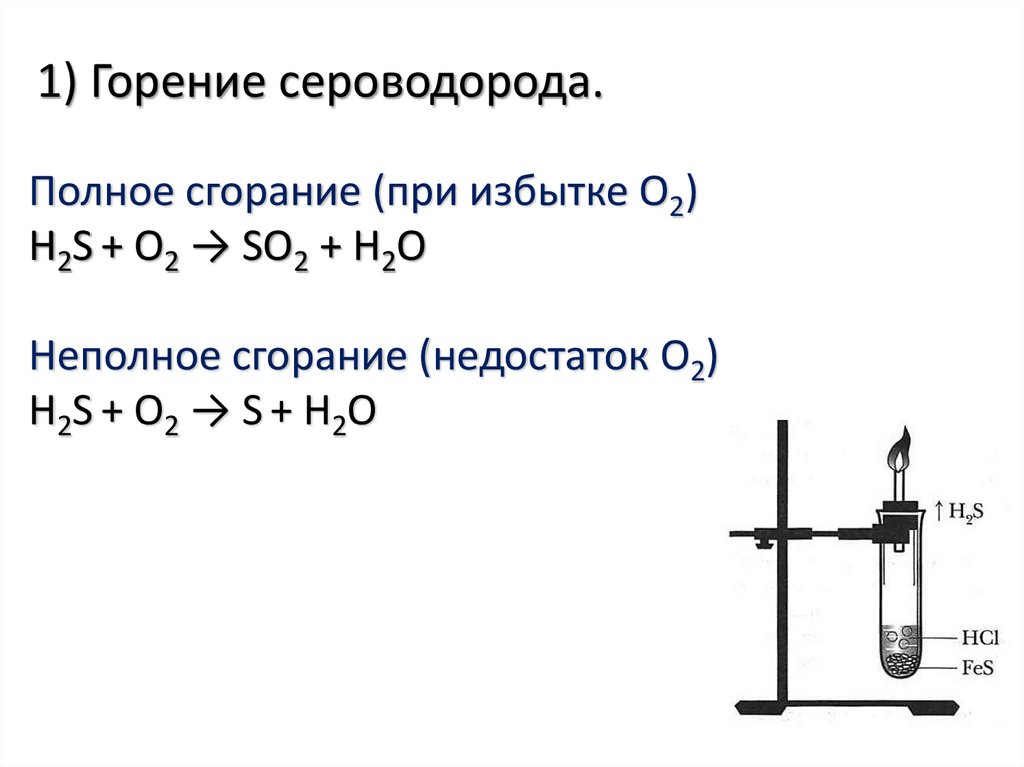 Неполное окисление сероводорода (при