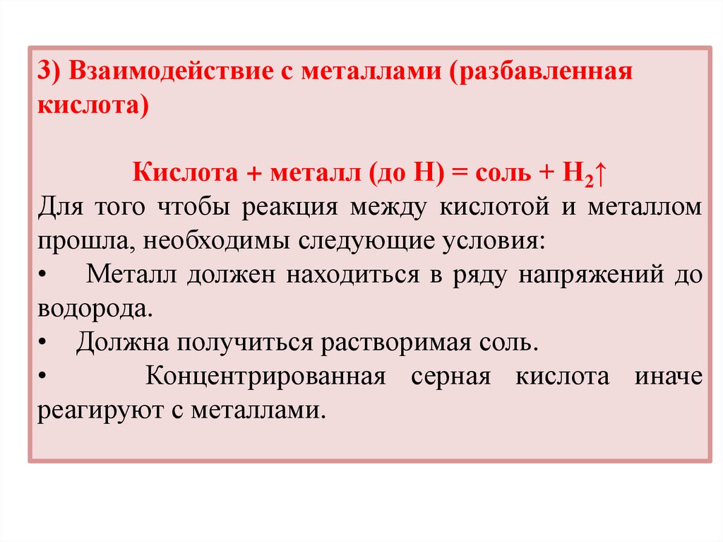 3) Взаимодействие с металлами (разбавленнаякислота)