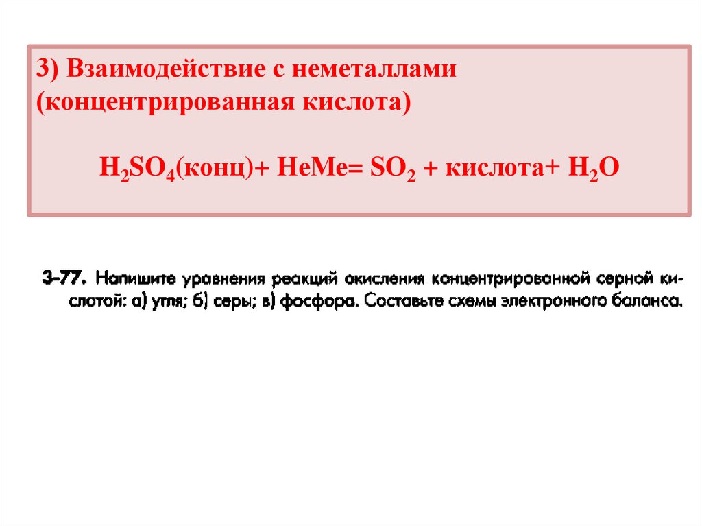 3) Взаимодействие с неметаллами(концентрированная кислота)