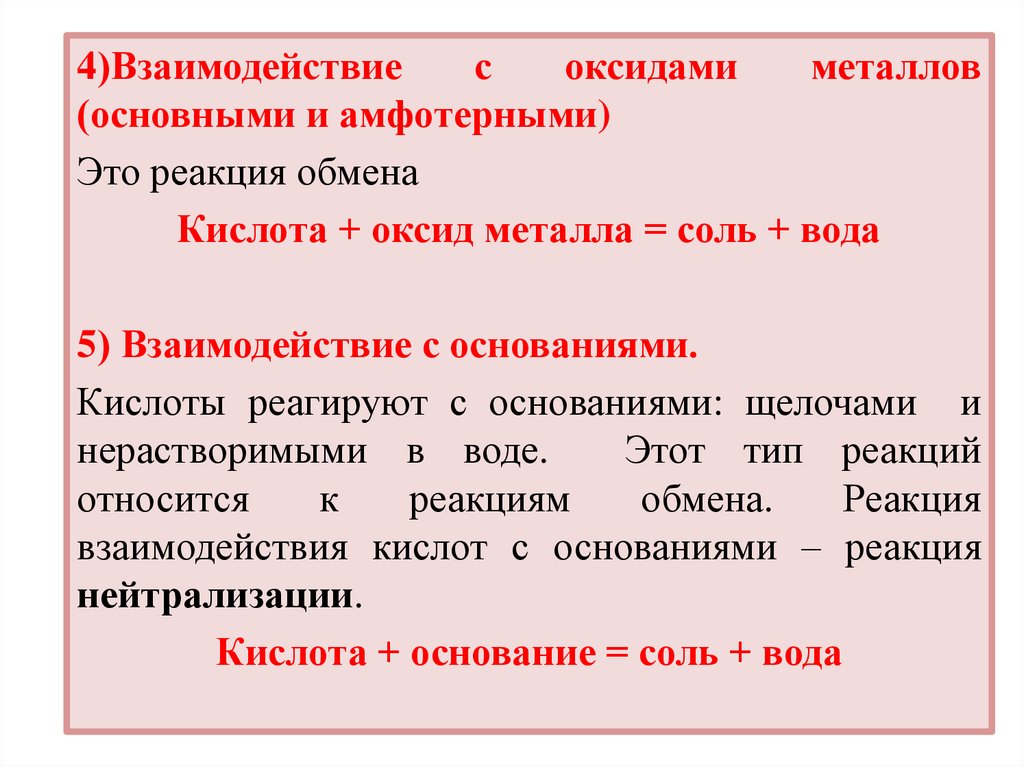 взаимодействия кислот с основаниями – реакция