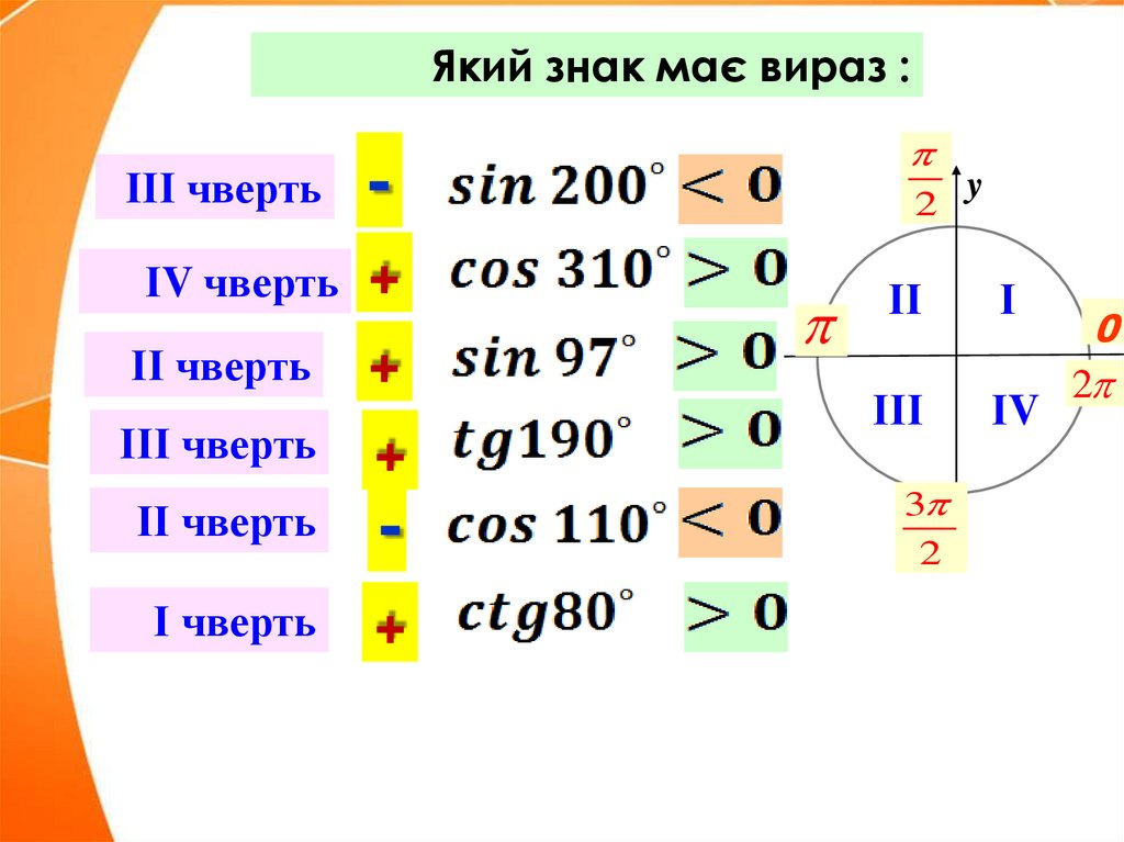 Який знак має вираз :ІІІ чверть