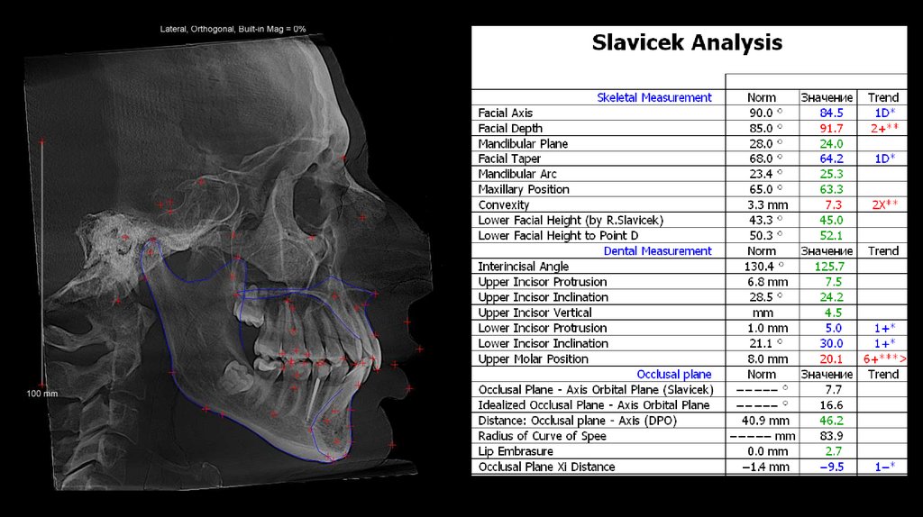 1. Длина тела нижней челюсти справа в норме, слева в норме.