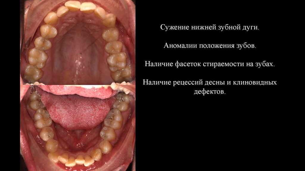 Сужение нижней зубной дуги.Аномалии положения зубов.