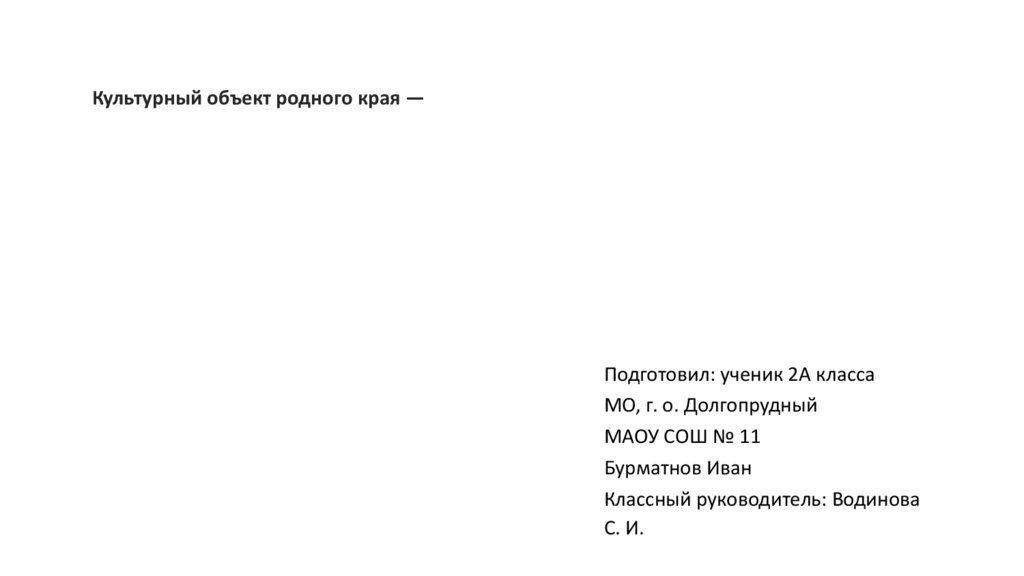 Культурный объект родного края —Подготовил: ученик 2А класса