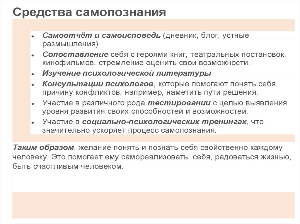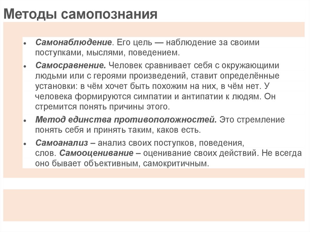 Методы самопознанияСамонаблюдение. Его цель — наблюдение за своими
