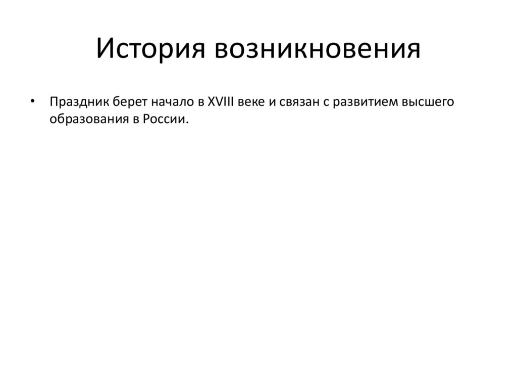 История возникновения• Праздник берет начало в XVIII веке и связан с развитием высшего