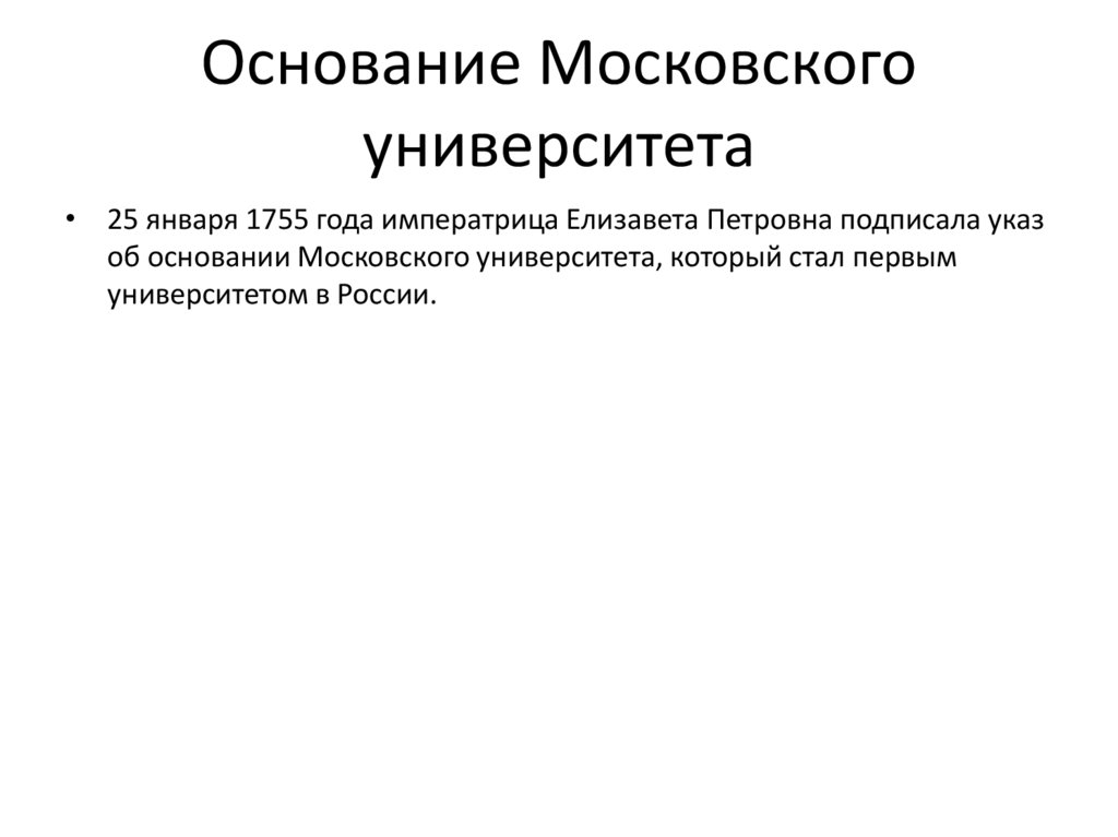 • 25 января 1755 года императрица Елизавета Петровна подписала указ