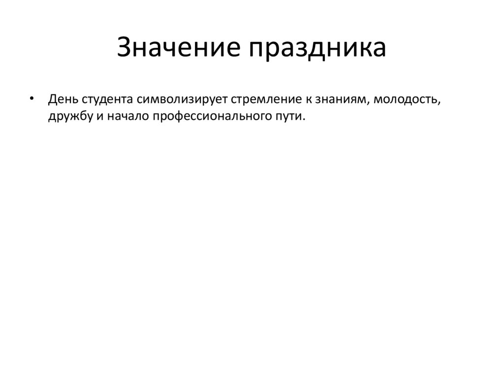 Значение праздника• День студента символизирует стремление к знаниям, молодость,
