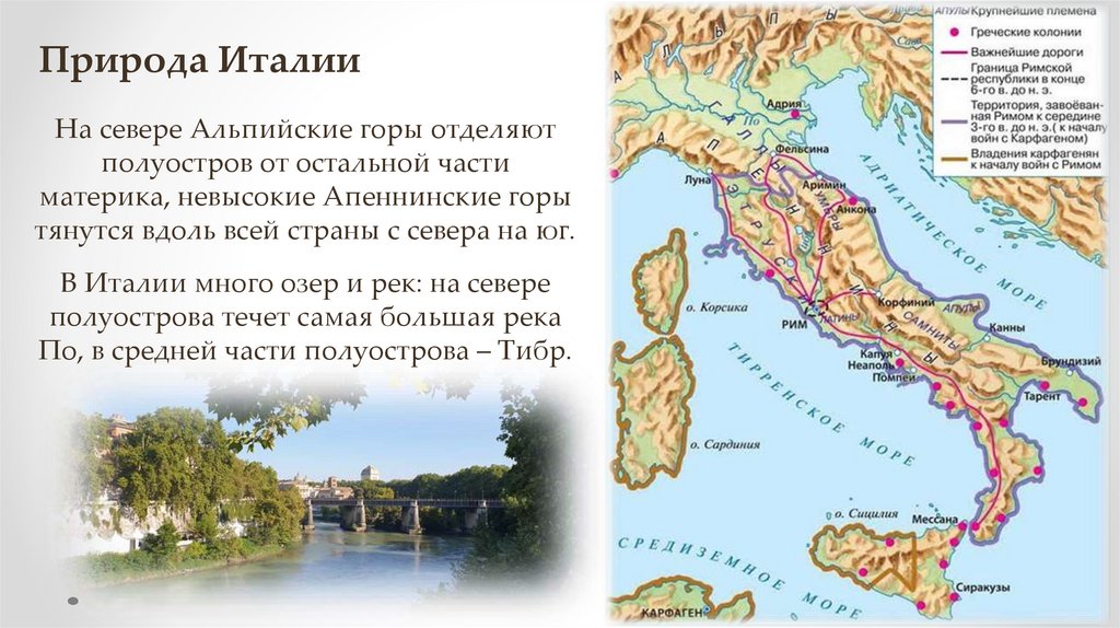 По, в средней части полуострова – Тибр.
