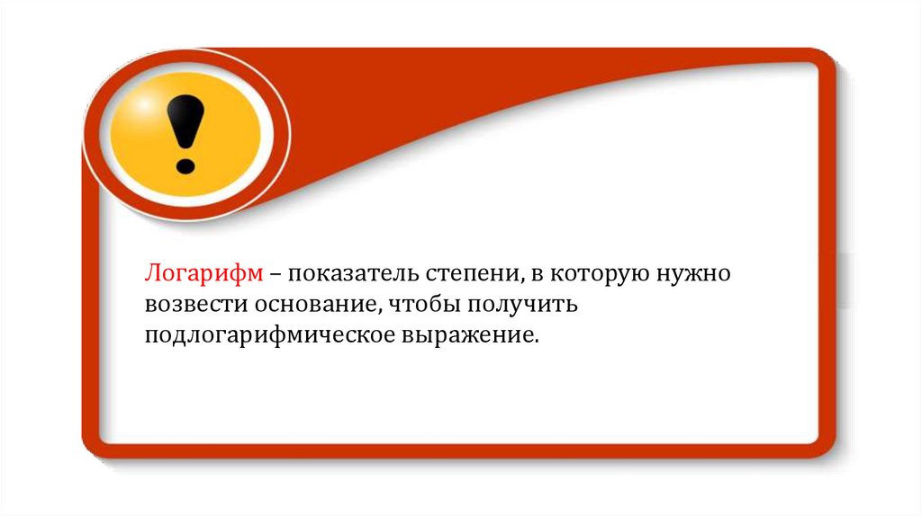 Логарифм – показатель степени, в которую нужновозвести основание, чтобы получить