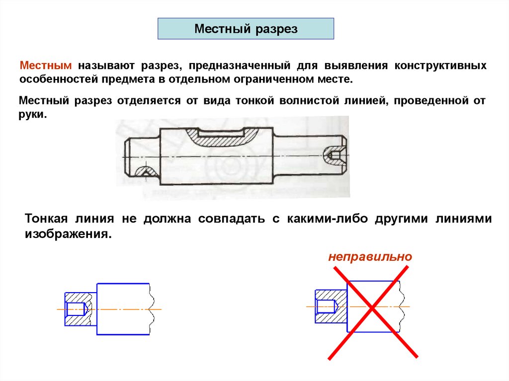 Местные - разрез, служащий для выяснения внутреннего устройства предмета лишь в