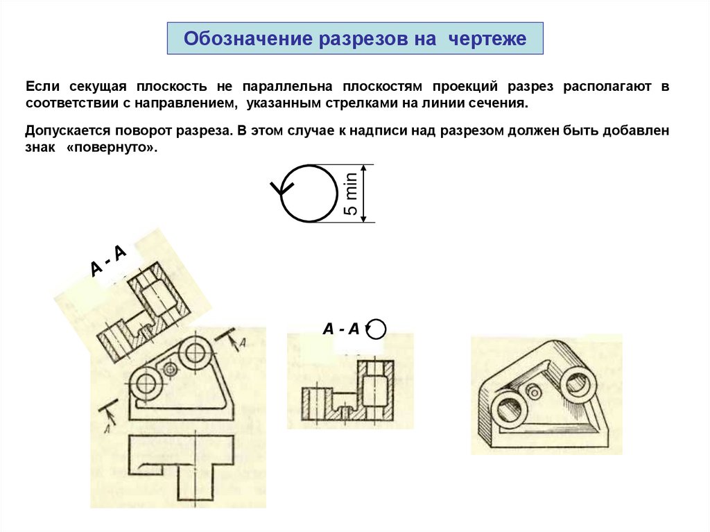 Допускается поворот разреза. В этом случае к надписи над разрезом должен быть добавлен