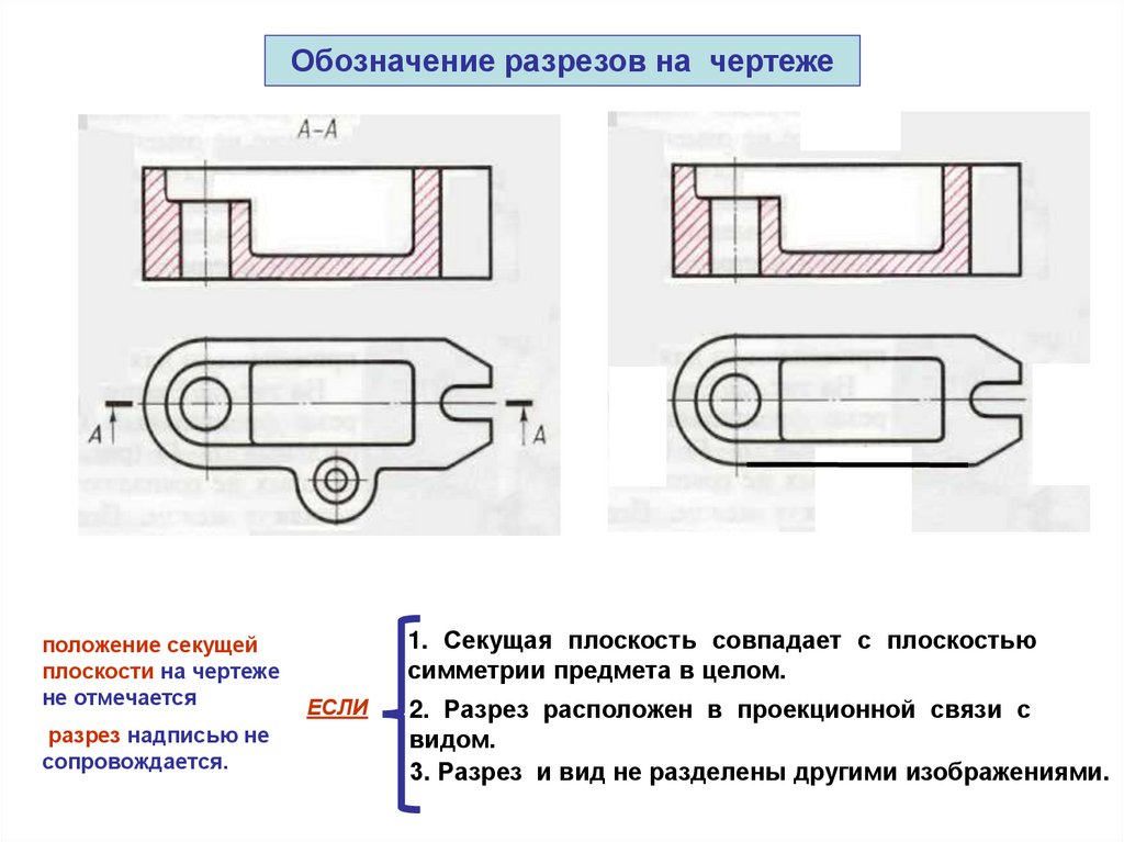 Обозначение разрезов на чертежеположение секущей