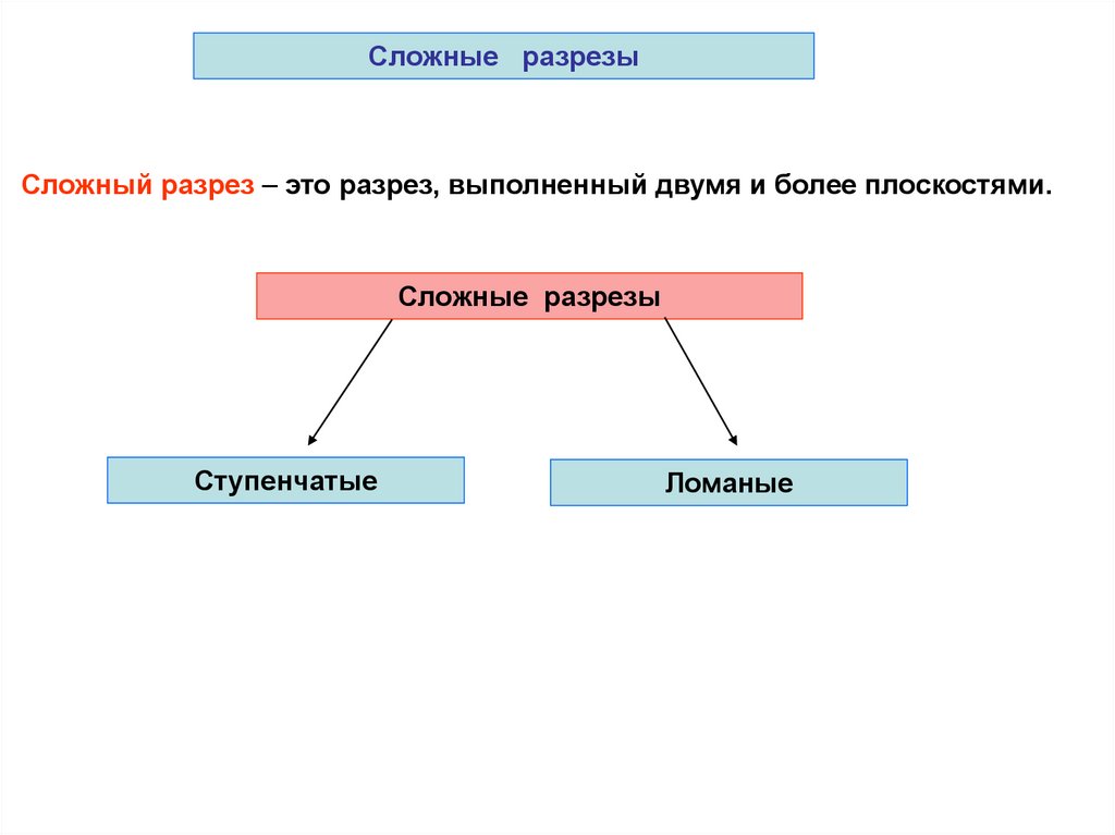 Сложные – если применяется несколько секущих плоскостей (ступенчатый, ломаный).