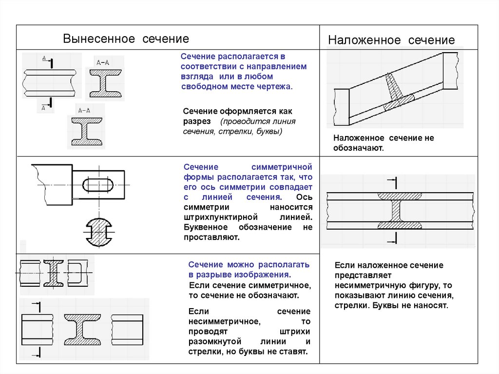Вынесенное сечениеНаложенное сечение