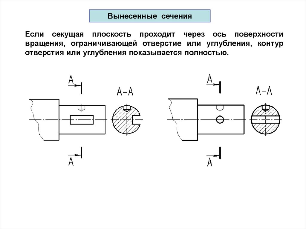 Вынесенные сеченияЕсли секущая плоскость проходит через ось поверхности