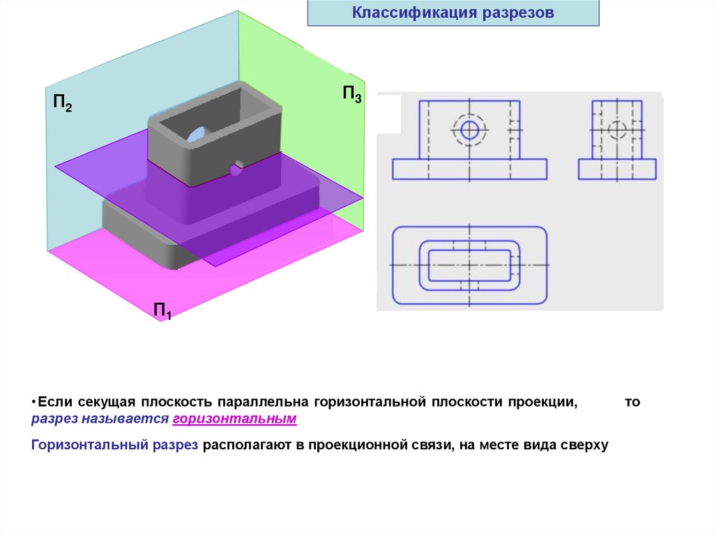 Горизонтальный разрез располагают в проекционной связи, на месте вида сверху