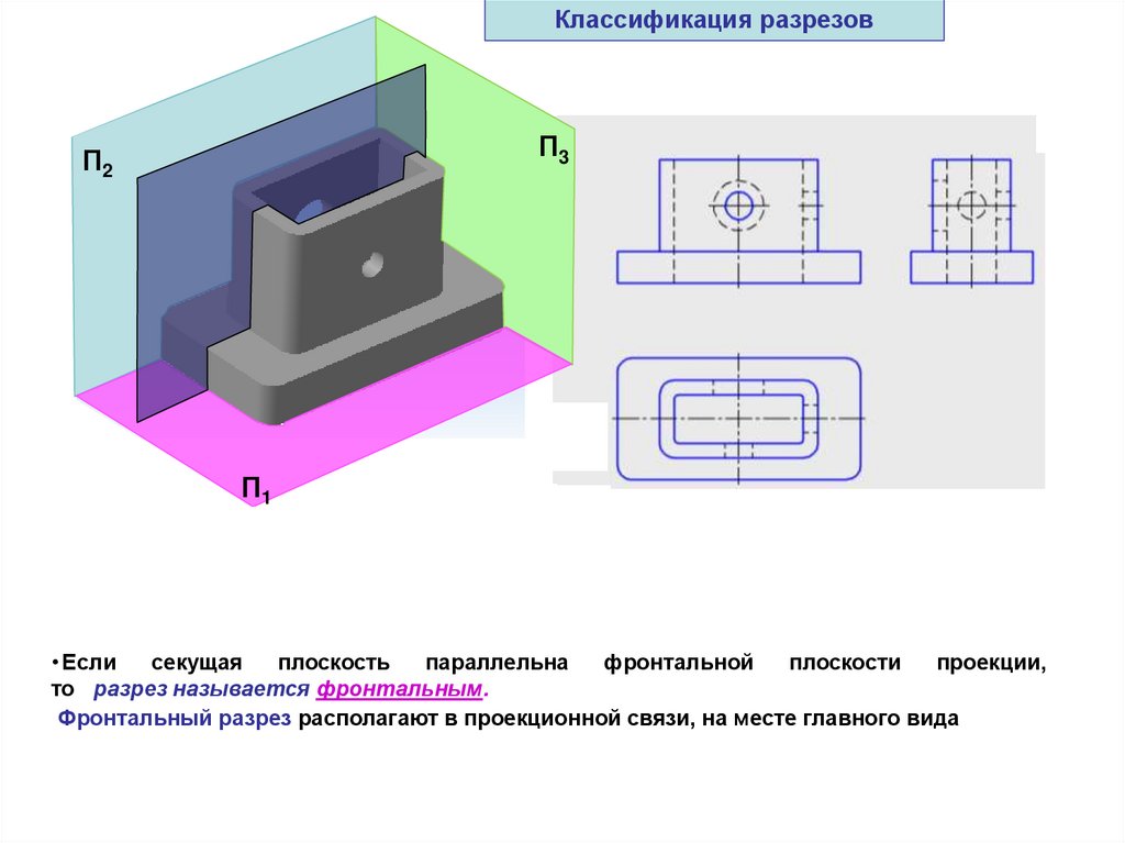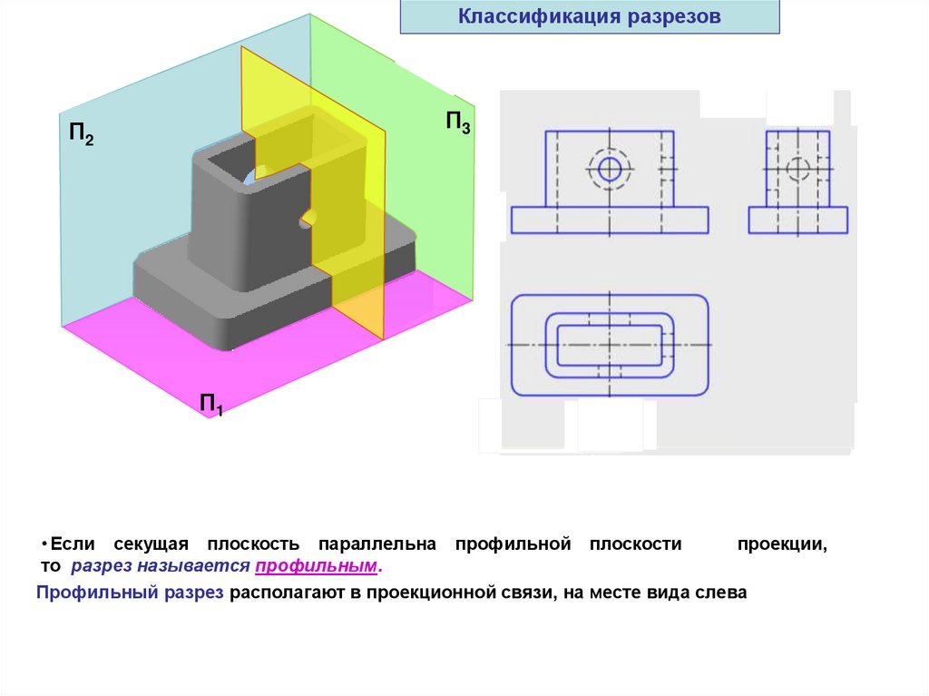 одной или несколькими плоскостями. В разрезе показывают то, что