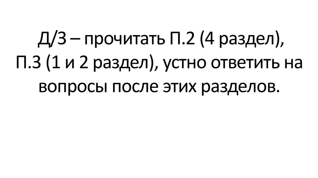 Д/З – прочитать П.2 (4 раздел),П.3 (1 и 2 раздел), устно ответить на