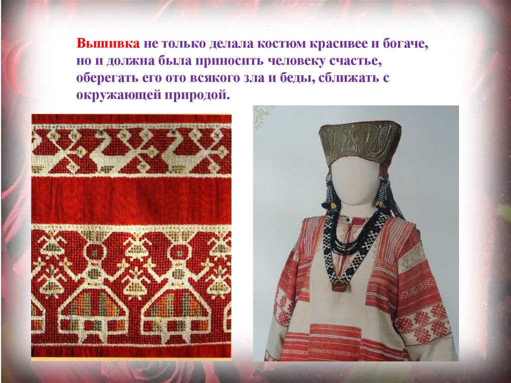 Вышивка не только делала костюм красивее и богаче,но и должна была приносить человеку счастье,