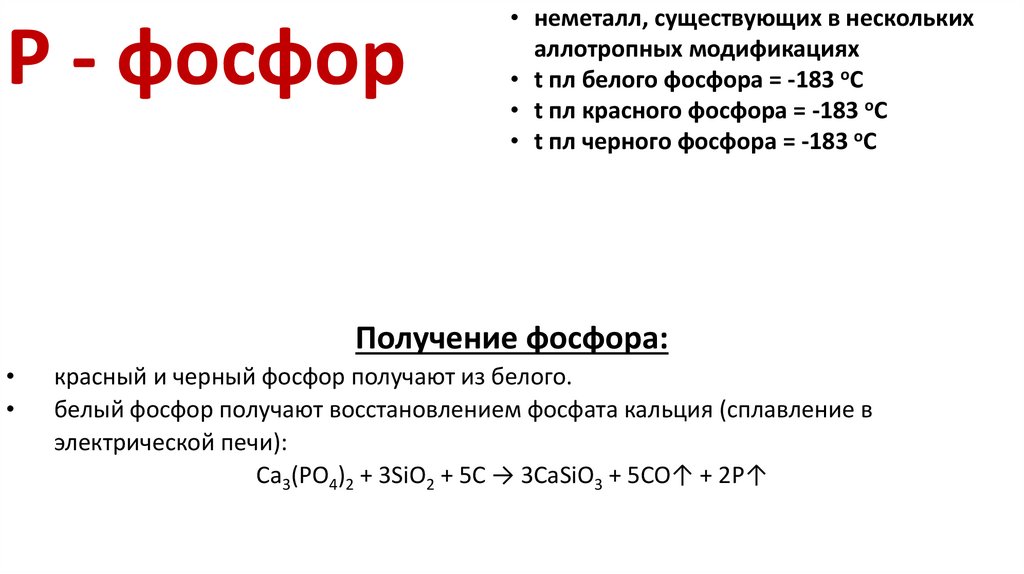 белый фосфор получают восстановлением фосфата кальция (сплавление в