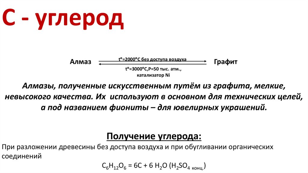 С6Н12О6 = 6С + 6 Н2О (H2SO4 конц.)
